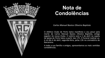 O Atlético Clube de Porto Salvo manifesta o seu pesar pela morte de Carlos Manuel Bastos Oliveira Baptista, antigo jogador do nosso Clube. O…